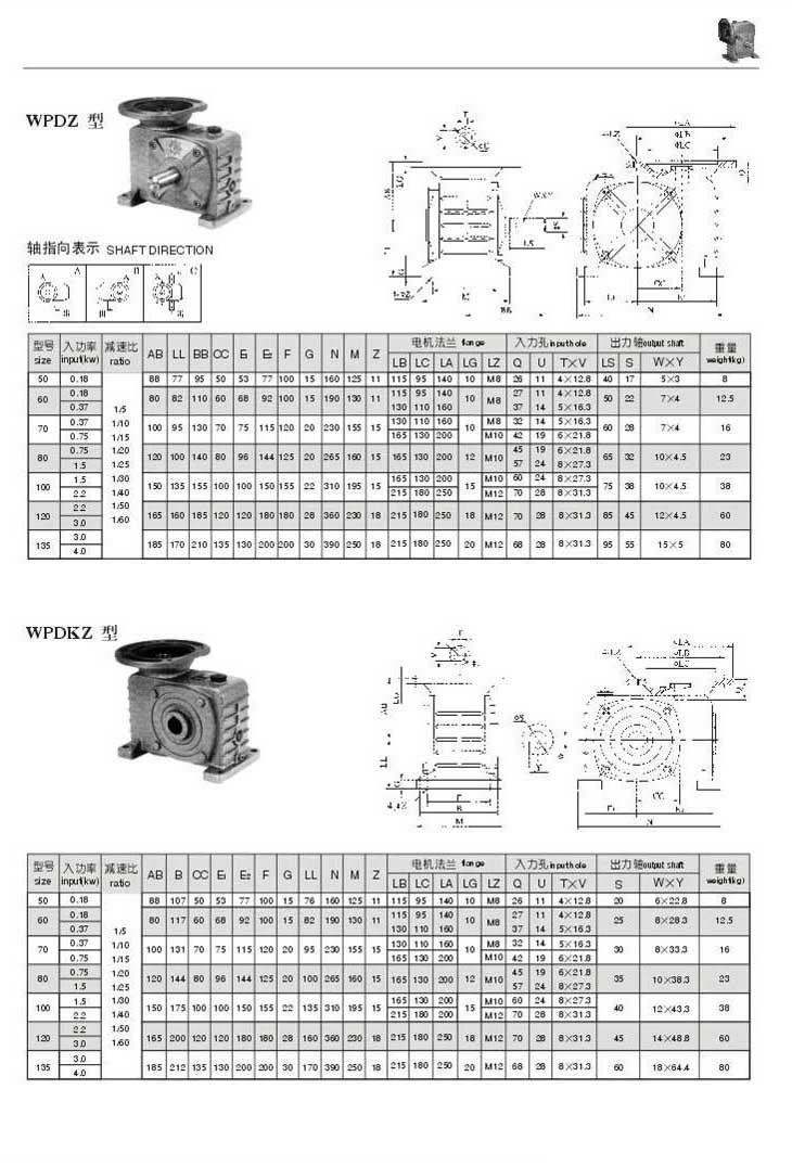 WPDZ,WPDKZ型型號(hào)參數(shù)圖表