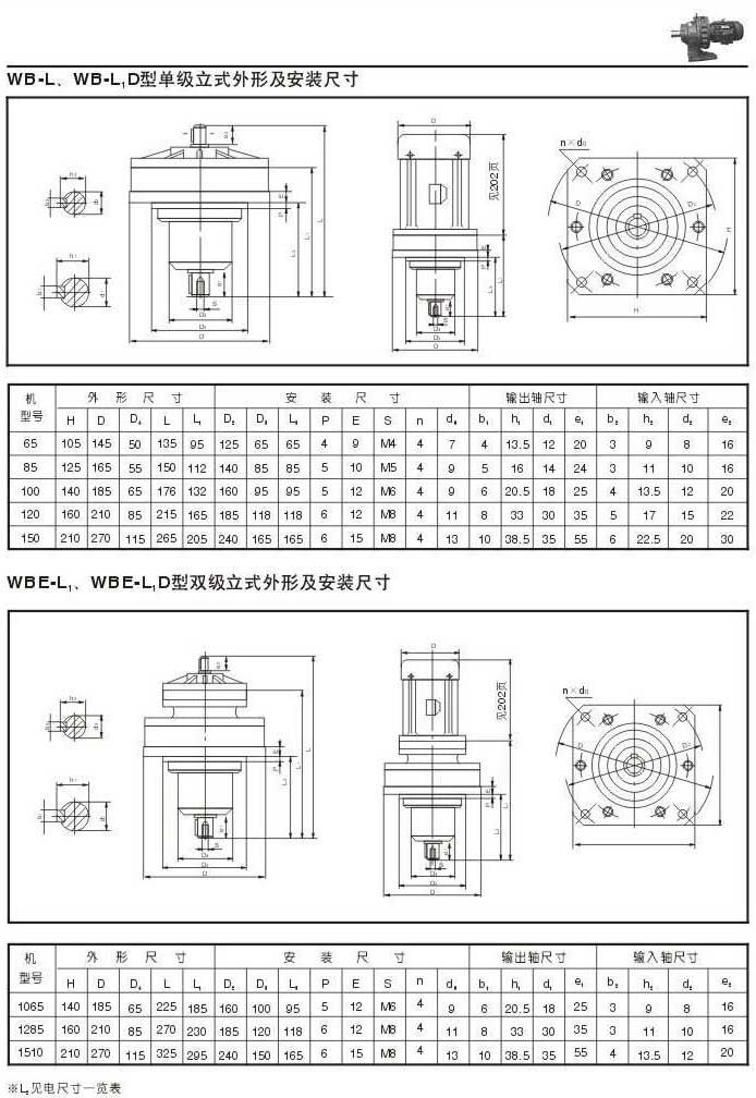 WB-L .WB-L,D型單級立式減速機外型圖,安裝尺寸 35WBE-L .WBE-L,D型單級立式減速機外型圖,安裝尺寸